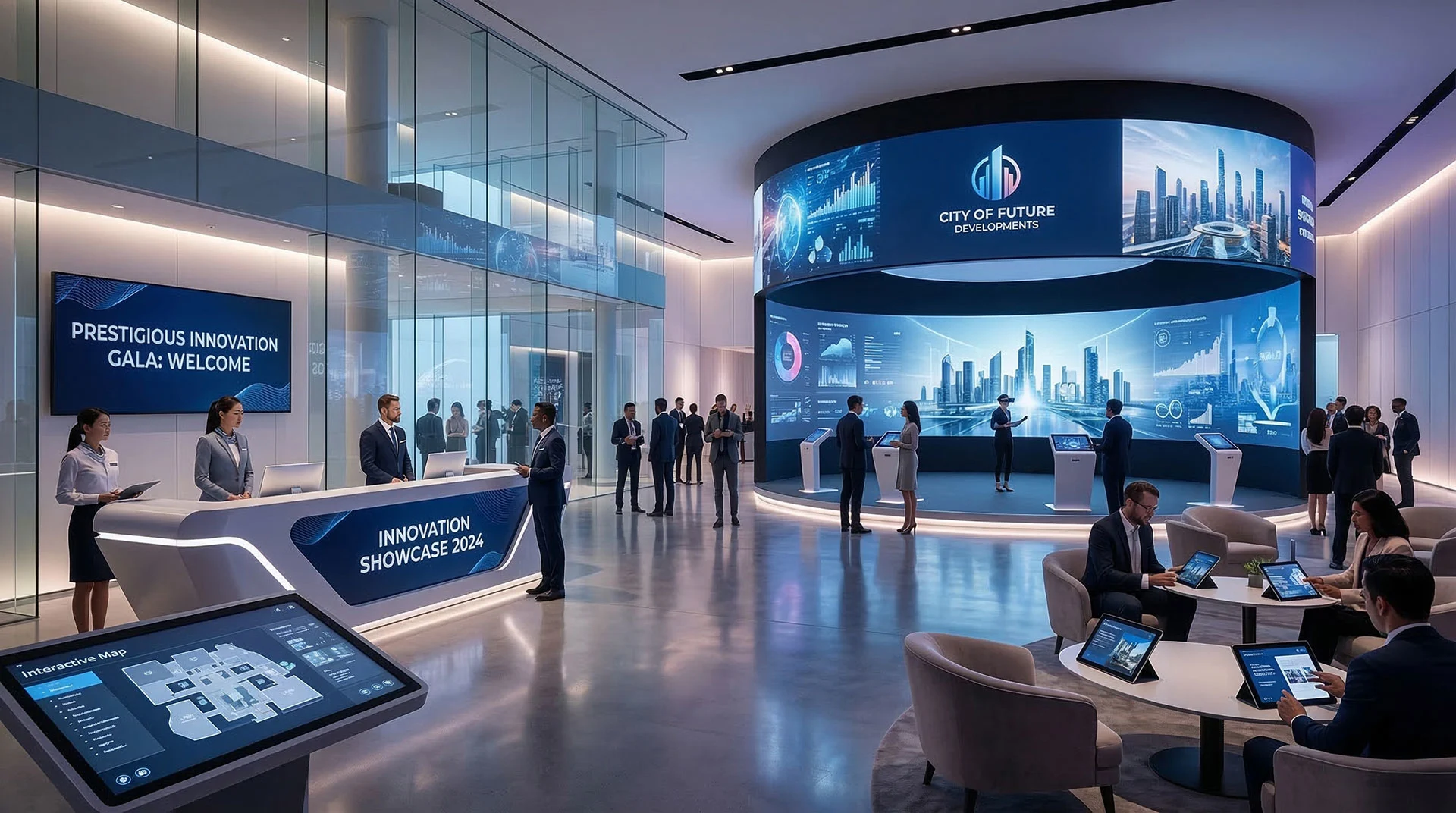 Permanent immersive installations and interpretation centres created for corporate launches, real estate showcases, and government events