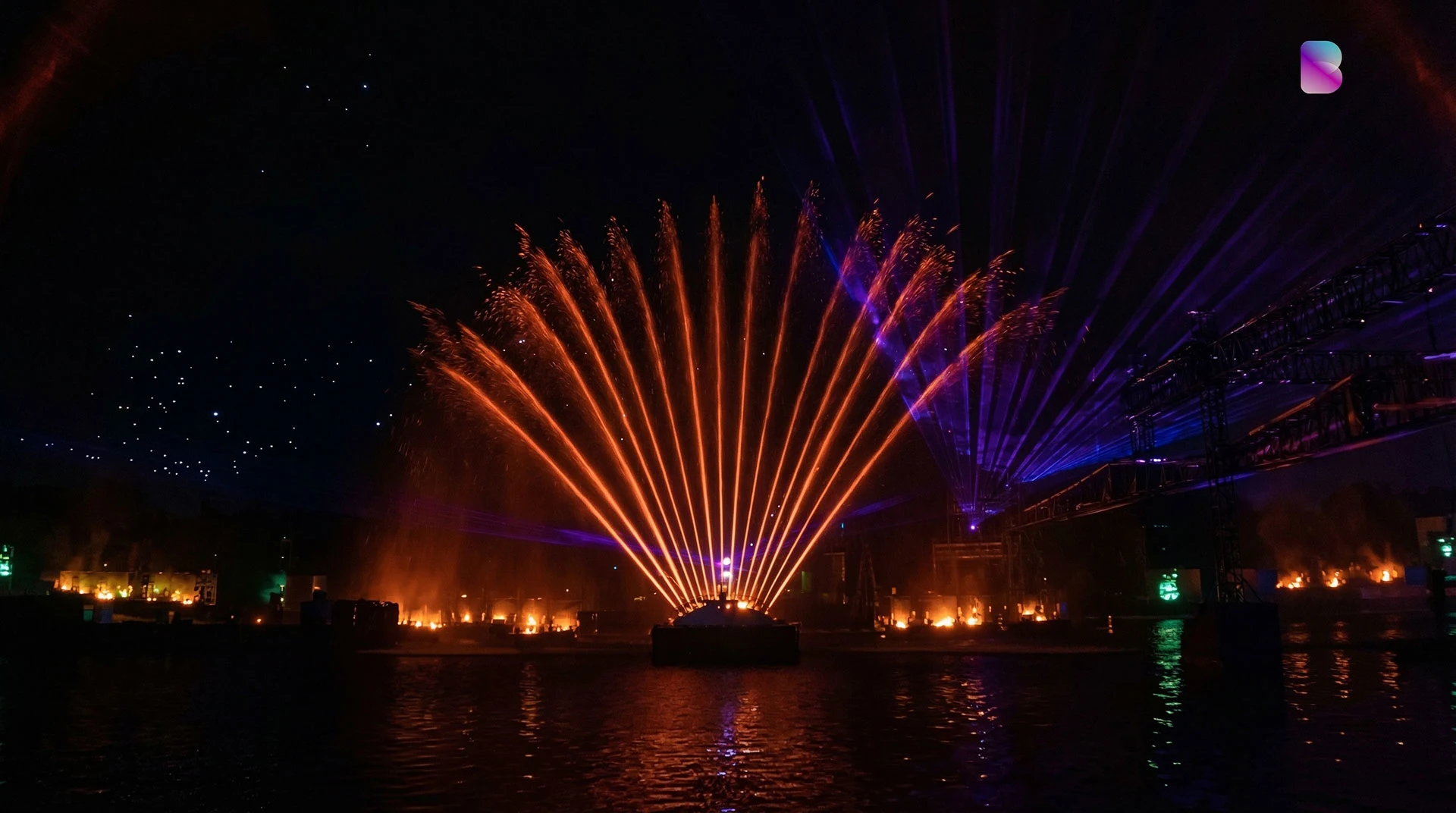 The system integrates high-lumen projection systems and laser projection technology, enabling large-format visual storytelling on the water screen. The entire installation including projection system integration and show content creation was delivered as part of the project.
